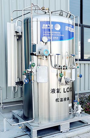 The MiniBulk system includes a small storage tank installed on-site, and a small tanker truck specifically built for holding cryogenic gases. A cryogenic storage tank replaces the cylinders previously kept at production facilities, freeing the client from the hassle of constantly having to switch out their bottled gas. The skid assembly design of the small storage tank saves space, and can be installed on level ground, offering customers a quick, economical, lossless, and 100% reliable gas supply experience.